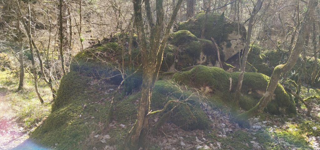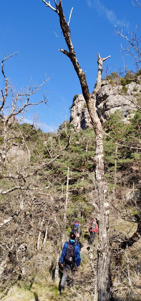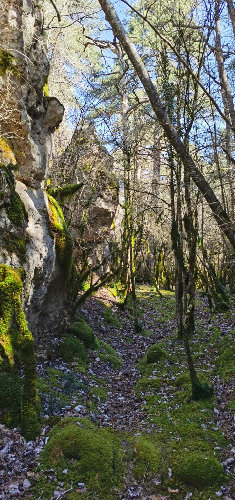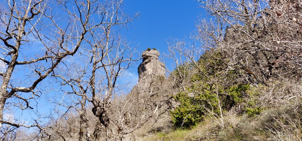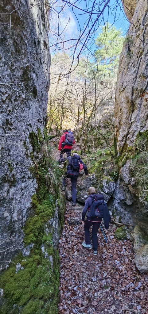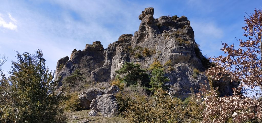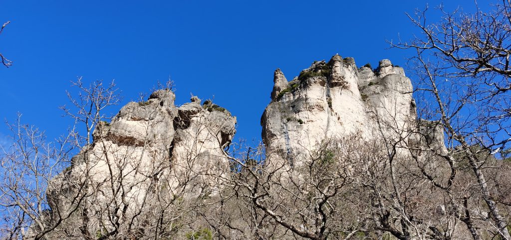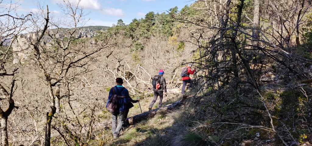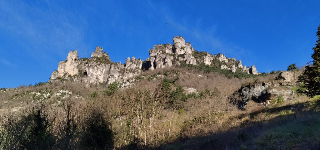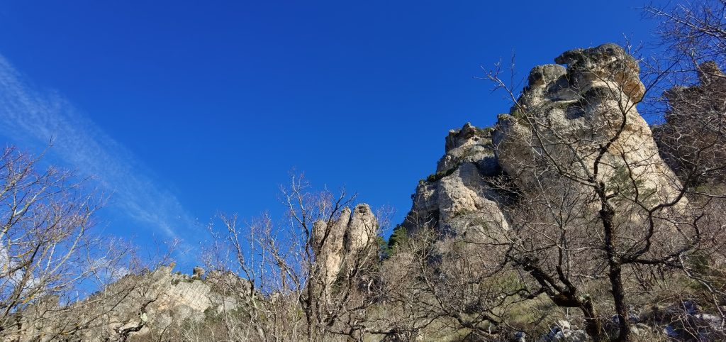 Il ne fait pas chaud 3° mais nous allons vite nous réchauffer. On débute par une montée sur un sentier. Nous sommes garé au village de La Roque Sainte Marguerite.